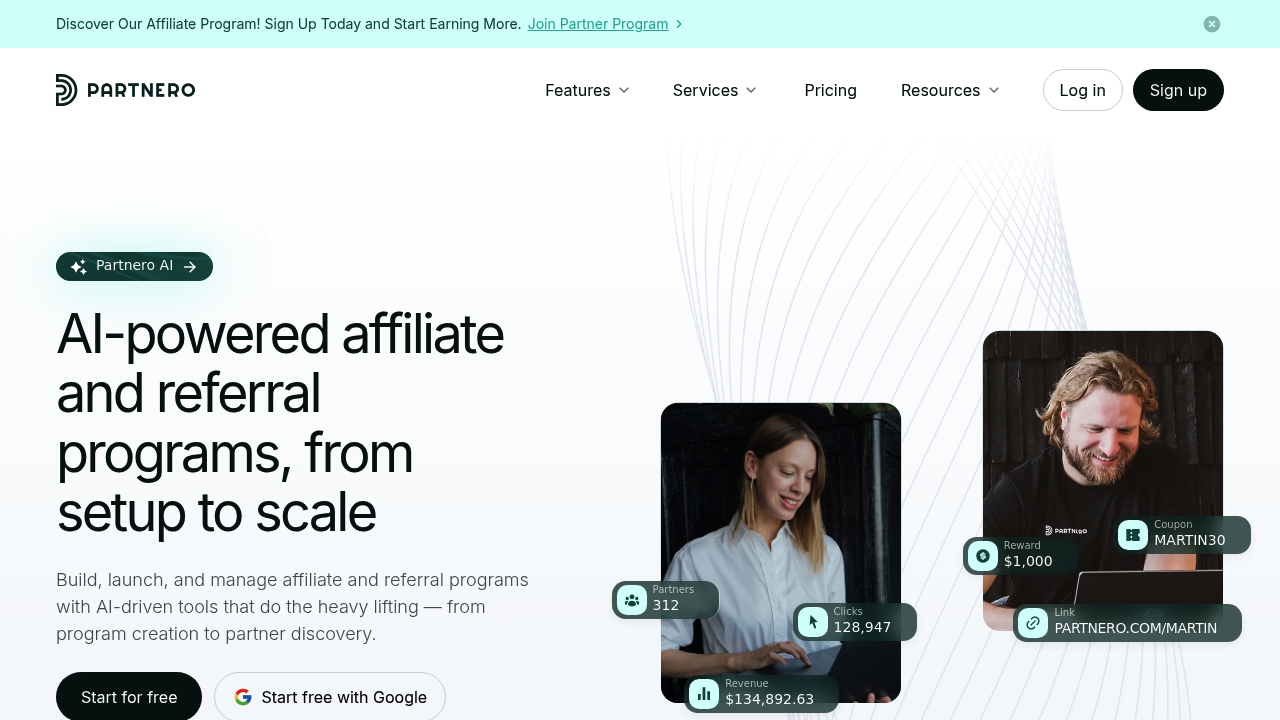AI-powered affiliate and referral software. Automate program setup, partner discovery, and growth. Provide your partners a modern, user-friendly, white-labeled dashboard to track their performance, earnings, and progress in real-time.